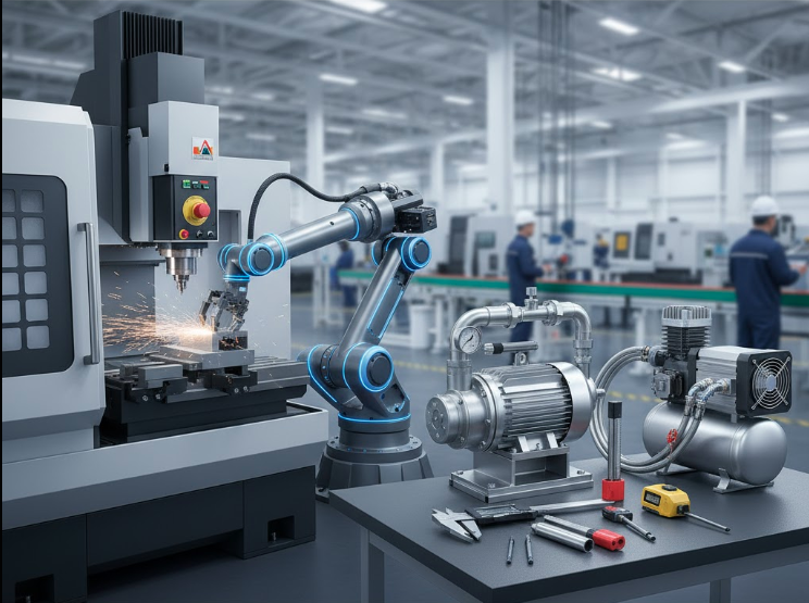 CNC Machines, Robotic Arms, Industrial Pumps, Compressors, and Precision Measurement Tools.
